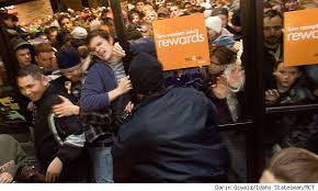 One would have to be fearless to go out and shop during Black Friday. It was almost frightening to hear the police spokeperson to remind people who will be out today to be careful where they keep their wallet, phone, etc. They want shoppers to be aware of their surroundings specifically the parking lot. I would think that this is such a scary day then why would you go. Unless you like the line up, people getting trampled, pushing and shoving and attacked at the parking lot, then I am guessing this is your kind of shopping. Jeff said that if he can get a deal through amazon where the shipping is free and you don't even have to leave home, no line up and no traffic, then for him it's the best way to shop. This year we agreed that we will not go wild about Christmas shopping, instead we will pick out gifts that are truly practical and useful. Some of the stores even opened shortly after thanksgiving dinner yesterday until very early morning. I guess I love my sleep and prefer not to get up very early to check out what deals I can get. Honestly, the truth is we don't really need anything and if we do we can just get it later when it's much more pleasant to shop. We plan to get some of the gifts between the first week and second week of December. Check out this photo from last year. If you are in fact going, please be safe and hopefully it's worth it.